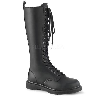 1 1/4 インチ (32 mm) 積層フラットかかと 20 ハトメ編み上げニーハイ ユニセックス ビーガン戻ってプルタブ、フルレングス ジッパー閉鎖中 w/ブート(Heel 20-Eyelet Knee High Unisex Vegan Boot, Side Zip)