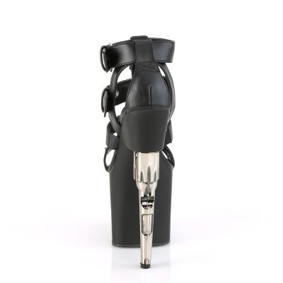 7 1/2"(191mm)ガンヒール、3 1/2"(89mm)プラットフォームストラップTストラップクローズバックサンダル、メタルリング&スタッドディテール(PF T-Strap Close Back Sandal)