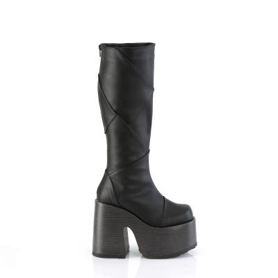 5""(127mm)ブロックヒール、3"(75mm)フェイクウッドラッププラットフォームパッチウッドニーハイブーツ、インサイドジップクロージャー(P/F Knee High Boot, Inside Zip)