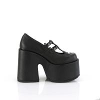 5"(127mm)チャンキーヒール、3"(76mm)プラットフォームダブルTストラップマリヤ、シルバートーンバットバックル&バットカットアウトオンヴァンプ