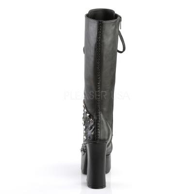 スタッズ付きパネルと完全ジッパー閉鎖中のつま先に金属のくも弓ニーハイ起動 4 1/2"(11.4 cm) ヒール、2 インチ (5.1 cm) プラットフォーム レースアップ フロント(PF Knee High Boot W/Studs)