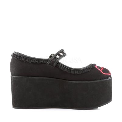 3 1/4 インチ (8.3 cm) プラットフォーム メアリージェーン特徴刺繍ハート ヴァンプ、フリル レース トリム、ピラミッド スタッド ・配管詳細眼鏡(PF Mary Jane w/Heart Eyeglasses Embroidery & Studs)