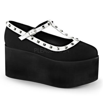 3 1/4 インチ (8.3 cm) プラットフォーム 2 トーン T ストラップ ピラミッド スタッドとバックルの詳細(PF Two Tone T-Strap w/Studs & Buckle Detail)