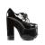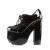 6 1/2 インチ (16.5 cm) ブロックのかかと 3 インチ (7.6 cm) プラットフォーム アンクルブー ティー カットアウト デザインを畝し、エプロン ・配管詳細、D リング フロント留めを織り交ぜて