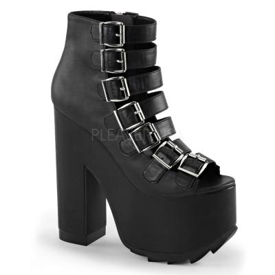 6 1/2 インチ (16.5 cm) ヒール ブロック 3 インチ (7.6 cm) バックル ディテール、ジッパー閉鎖中畝プラットフォーム ストラップ サンダル足首ブート(PF Sandal Bootie w/Buckle Straps, Side Zip)