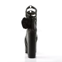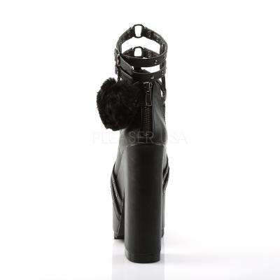 6 1/2 インチ (16.5 cm) ヒール、3 インチ (7.6 cm) PF ケージ足首ブート スタッド ・ O-リングと、取り外し可能なふわふわハート型チャームとボンテージ スタイルのストラップを備え、バック ジッパーの金属