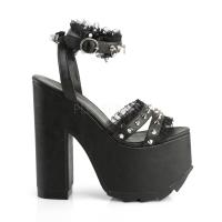 6 1/2 インチ (16.5 cm) ヒール, 3 インチ (7.6 cm) プラットフォーム ラップ足首ストラップ サンダル特徴フリル, コーン スパイク、O リング ・ ストラップ上ブラック ローズの詳細