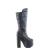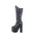 6 1/2 インチ (16.5 cm) ヒール ブロック、3 インチ (7.6 cm) 畝プラットフォーム ニーハイ全室シャフトのキルト デザイン、露出ジッパー ジッパー閉鎖中の外側の側面とスナップオン ストラップ詳細を起動します。