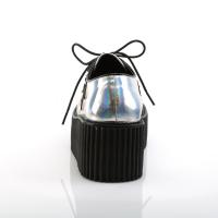 ◆ 3 インチ (7.6 cm) プラットフォーム クリーパー エプロン ・銀ホログラム/ブラック ヴィーガンレザー、キーパーの雷ボルトの詳細 ◆