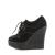 ◆ 5 1/4"(13.3 cm) 織りエプロンと配管の詳細とプラットフォームの D リング レースアップ フロント ビーガン クリーパーをウェッジ ◆