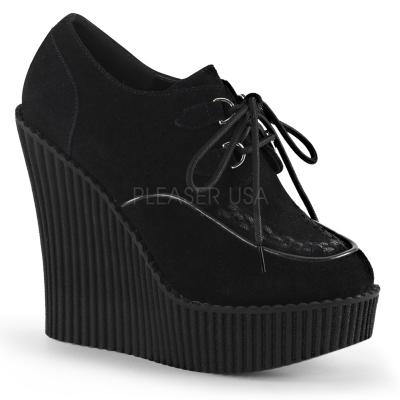 5 1/4"(13.3 cm) 織りエプロンと配管の詳細とプラットフォームの D リング レースアップ フロント ビーガン クリーパーをウェッジ(Wedge PF D-Ring Lace-Up Front Vegan Creeper)