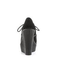 5 1/4"(13.3 cm) 織りエプロンと配管の詳細とプラットフォームの D リング レースアップ フロント ビーガン クリーパーをウェッジ(Wedge PF D-Ring Lace-Up Front Vegan Creeper)
