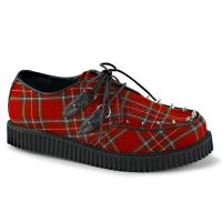 1"(2.5 cm) プラットフォーム D-リング編上げクリーパー w/スパイクと配管詳細、赤い格子縞(PF D-Ring Lace-Up Creeper w/Spikes & Piping Detail)