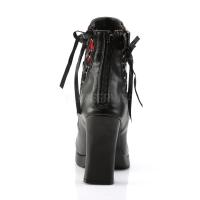 4 インチ (10.2 cm) ヒール ブロック、3/4 インチ (1.9 cm) プラットフォーム 2 トーン コルセット スタイル足首ブート トリプルと座のストラップとレース オーバーレイの詳細、内側ジッパー