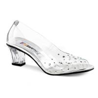 2 インチ (5.1 cm) ヒール フロント ヴァンプとヒールにラインス トーン装飾、ルーサイトのぞき見つま先のポンプをオフに(Heel Peep Toe Pump w/RS on Vamp & Heel)