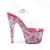 7 インチ (17.8 cm) スチレットヒール、2 3/4 インチ (7 cm) プラットフォーム アンクルス トラップ サンダル プラットフォーム全体をカバーするマルチ色クリスタル タイルの特徴