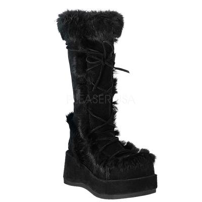 2 3/4 インチ (7 cm) ヒール ゴス ゴーゴー スエード/フェイクファー プラットフォーム膝ブート、完全内部サイズ ジッパー(**2 3/4 Goth Gogo Imitation Suede-Fur Knee Boot)