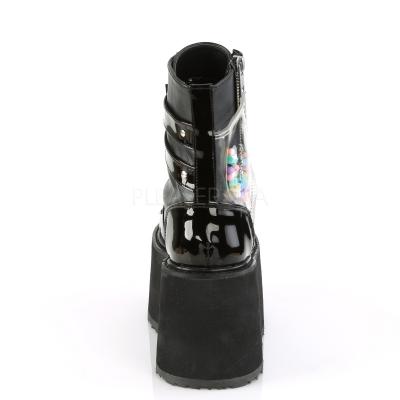 3 1/2 インチ (90 mm) w/ダブル フック N プラットホーム編み上げ足首ブート ' ループのストラップ、様々 な金属外、魔性の女の魅力の装飾品とスパイクを含むパネル ポケット外クリア PVC ジッパー閉鎖