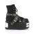 3 1/2 インチ (90 mm) フロント ・ バックの金属メッキ ハーネス スタイル スナップに十字ストラップを備えたプラットフォーム編み上げ足首ブート ・ グロメット バックルのストラップ、バック ジッパー閉鎖