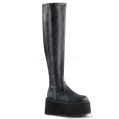 3 1/2 インチ (90 mm) ミニ ピラミッド w/プラットフォーム ストレッチ太もも高ブートちりばめられたデッキサイド トリム、ジッパー閉鎖中(PF Thigh High Boot, Side Zip)