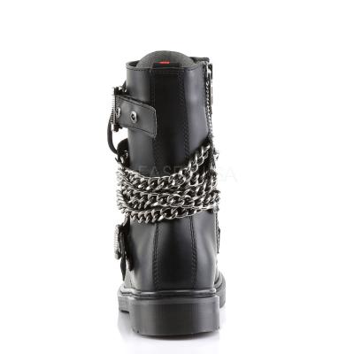 1"(2.5 cm) ヒール 10 アイレット ゴス パンク軍事戦闘ブート チェーン、完全内側ジッパーとバックル(10 Eyelet Vegan Calf Combat BT W/ Buckles-Chains & Zipper)