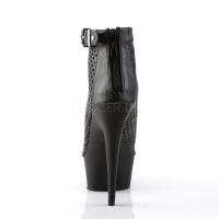 閉鎖が戻って Zip スチレットヒール 6 インチ (15.2 cm)、1 3/4 インチ (4.5 cm) プラットフォームのぞき見つま先格子切り欠きアンクルブー ティー バックル ディテール