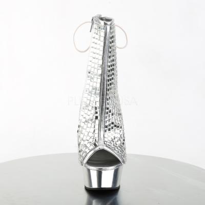 スチレットヒール 6 インチ (15.2 cm)、1 3/4 インチ (4.5 cm) クローム メッキ プラットフォーム オープンつま先またはかかとレースアップ バック足首ブート全室ディスコ ボール ミラー ジッパー閉鎖中の全体の上部をカバー