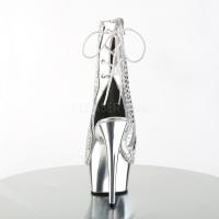 スチレットヒール 6 インチ (15.2 cm)、1 3/4 インチ (4.5 cm) クローム メッキ プラットフォーム オープンつま先またはかかとレースアップ バック足首ブート全室ディスコ ボール ミラー ジッパー閉鎖中の全体の上部をカバー(PF Open Toe/Heel Ankle Boot, Side Zip)