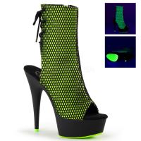 スチレットヒール 6 インチ (15.2 cm)、1 3/4 インチ (4.5 cm) プラットフォーム オープンつま先またはかかとバックレース アップ ブーツ UV ブラック ライト反応フィッシュ ネット上・ アウトソール/Toplift、ジッパー閉鎖中の特徴(PF Open Toe/Heel Ankle Boot, Side Zip)