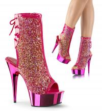 スチレットヒール 6 インチ (15.2 cm)、1 3/4 インチ (4.5 cm) プラットフォーム オープンつま先またはかかとバック編み上げ足首ブート虹色のラインス トーンで装飾された全体の上の特徴