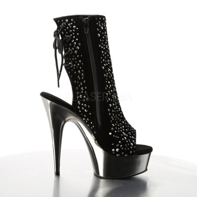 スチレットヒール 6 インチ (15.2 cm)、1 3/4 インチ (4.5 cm) プラットフォーム オープンつま先/バック足首ラインス トーンに特徴を起動、フル内側ジッパーのひもをバックアップ