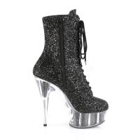 6 インチ (152 mm)、1 3/4"(45 mm) キラキラ挿入プラットフォーム レースアップ フロント足首ブート、ジッパー閉鎖中フル