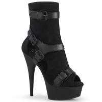 6""(152mm)ヒール、1 3/4"(45mm)プラットフォームピープつま先アンクルブーツw /切り抜きヴァンプの上にバックルストラップを備えたカットアウト、バックジップクロージャー