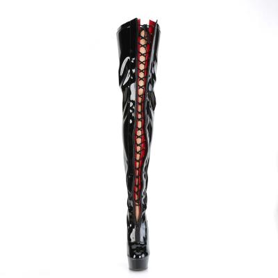 6""(152mm)ヒール、1 3/4"(45mm)プラットフォームツートーンレースアップ/ジップアップ太ハイブーツ、フルレングスフロントジップ&10"バックジップクロージャー