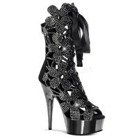 スチレットヒール 6 インチ (15.2 cm)、1 3/4 インチ (4.5 cm) プラットフォームのぞき見つま先サンダル ブーティー カットアウト ディテールとラインス トーンで装飾された上、上の完全なバック ジッパー(PF Boot w/RS)