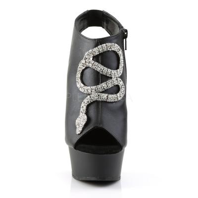 ◆ スチレットヒール 6 インチ (15.2 cm)、1 3/4 インチ (4.5 cm) ラインス トーン付きプラットフォーム オープンつま先またはかかと足 Bootie ちりばめられたジッパー閉鎖中のヘビの髪飾り ◆