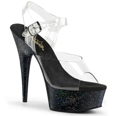 6 インチ (15.2 cm) スチレットヒール、1 3/4 インチ (4.5 cm) プラットフォーム アンクルス トラップ サンダル全体の底上ミニ虹色キラキラの特徴(PF Ankle Strap Sandal w/Glitter)
