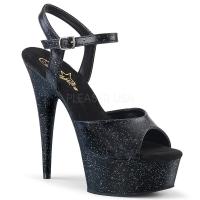 6 インチ (15.2 cm) スチレットヒール、1 3/4 インチ (4.5 cm) プラットフォーム アンクルス トラップ サンダル全体上部・ プラットフォームのミニ虹色のきらめきを搭載(PF Ankle Strap Sandal w/Glitter)