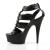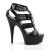 6 インチ (15.2 cm) スチレットヒール、1 3/4 インチ (4.5 cm) プラットフォーム ストラップ付き T ストラップの近くのバック サンダルと金属リング ・ スタッドの詳細