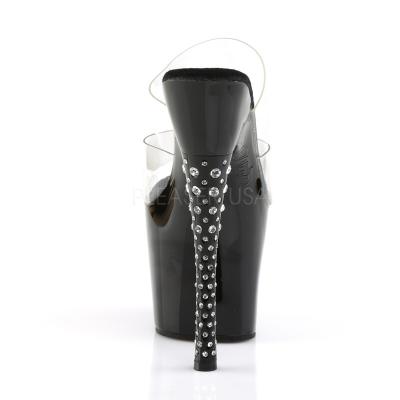 スチレットヒール 7 インチ (17.8 cm)、3 1/4 インチ (8.3 cm) プラットフォームのぞき見つま先スライド ラインス トーンの埋め込みかかとの特徴(PF RS Embed Heel Slide)
