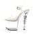 ラインス トーン組み込みダイスかかとを備えスチレットヒール 7 インチ (17.8 cm)、3 1/4 インチ (8.3 cm) プラットフォームのぞき見つま先 2 つバンド スライド