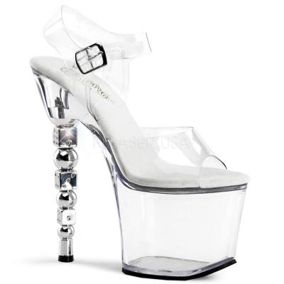 ラインス トーン組み込みダイスかかとを備えスチレットヒール 7 インチ (17.8 cm)、3 1/4 インチ (8.3 cm) プラットフォームのぞき見つま先 2 つバンド スライド(PF Sandal)