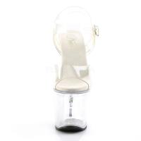 ラインス トーン組み込みダイスかかとを備えスチレットヒール 7 インチ (17.8 cm)、3 1/4 インチ (8.3 cm) プラットフォームのぞき見つま先 2 つバンド スライド(PF Sandal)
