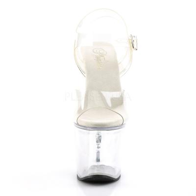 ラインス トーン組み込みダイスかかとを備えスチレットヒール 7 インチ (17.8 cm)、3 1/4 インチ (8.3 cm) プラットフォームのぞき見つま先 2 つバンド スライド