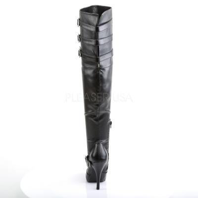 5 インチ (12.7 cm) ヒール、1/2 インチ (1.3 cm) 隠されたプラットフォーム幅腿の高いブーツ、全室タコの形をしたバックル、完全内側ジッパー(Hidden PF, Wide Width/Shaft, Thigh High Boot)