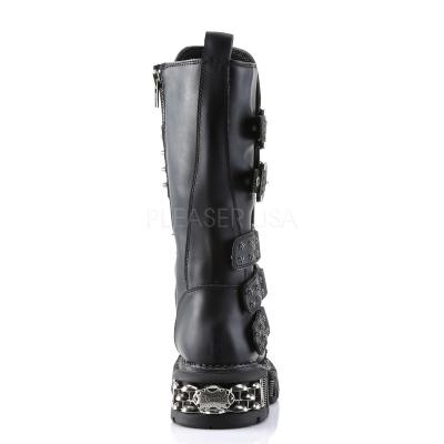2 1/2 インチ (6.4 cm) ソール、12 1/2 インチ背の高い、ユニセックスの野菜ブート スパイク装飾幅のダブル バックルのストラップ、サイドファスナー