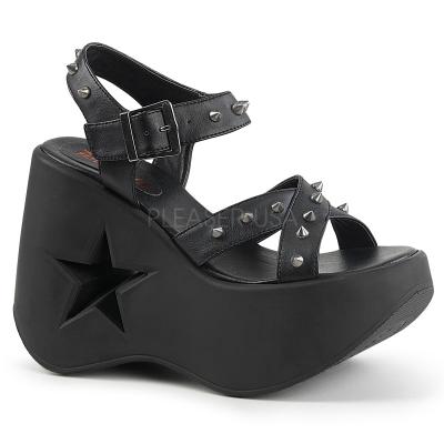 5 インチ (12.7 cm) 星素材プラットフォーム ウェッジ十字アンクルス トラップ サンダル コーン スパイクの詳細(Star Cutout Platform Wedge Ankle Strap Sandal)