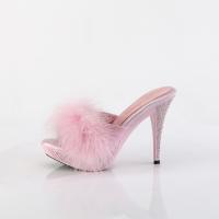 4 1/2""(114mm)ヒール、1"(25mm)ラインストーン装飾ヒールとプラットフォームをフィーチャーしたプラットフォームマラブースリッパ(PF Marabou Fur Slipper)