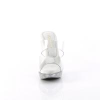 4 1/2"(114mm)ヒール、1"(25mm)ラインストーン装飾ヒールとプラットフォームをフィーチャーしたプラットフォームツーバンドスライド(PF Two Band Slide w/RS)