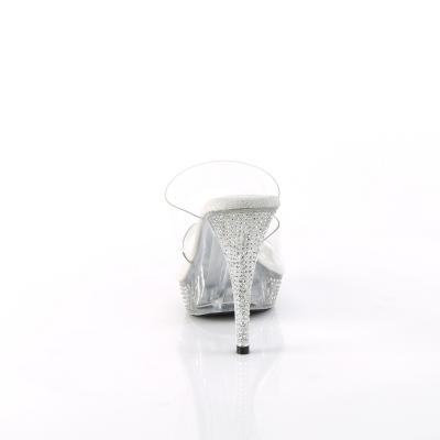 ◆ 4 1/2"(114mm)ヒール、1"(25mm)ラインストーン装飾ヒールとプラットフォームをフィーチャーしたプラットフォームツーバンドスライド ◆